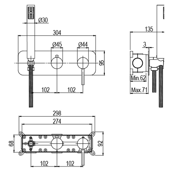 душевой комплект встраиваемый AQG Stick 19STIER24502