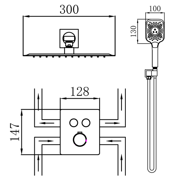 кнопочное переключение потоков (верхний душ, ручной душ)