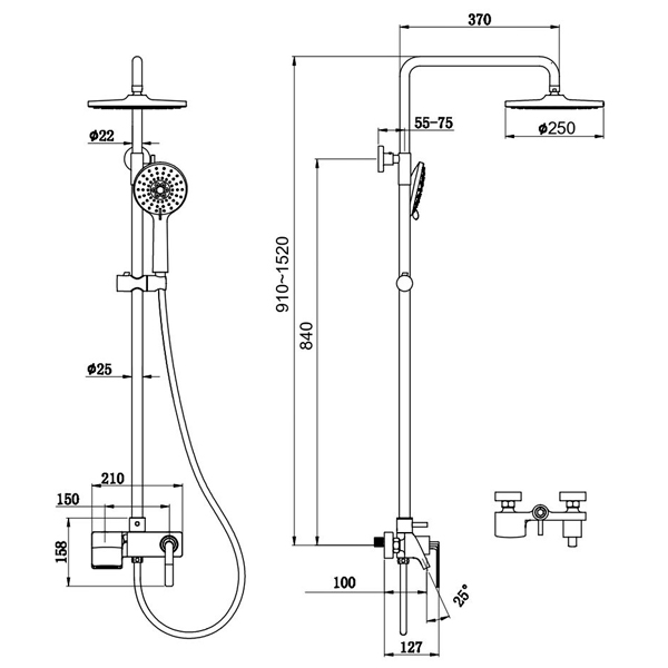 размеры (ШxГxВ), мм: 210x500x910-1520