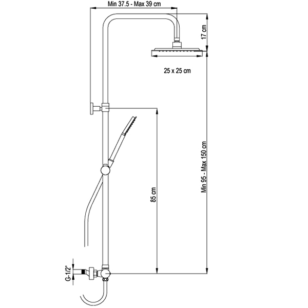 Душевая стойка с изливом AQG Alpha 21NITC25ASB11
