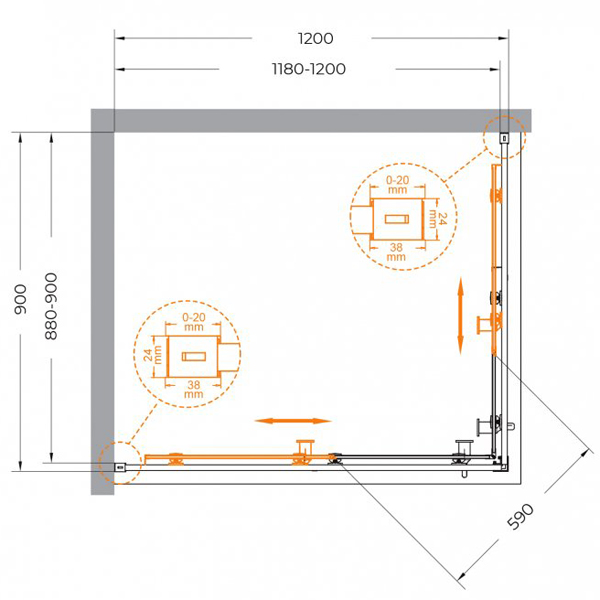душевой уголок Cezares Relax-304-AH-2-120/90-C-BORO