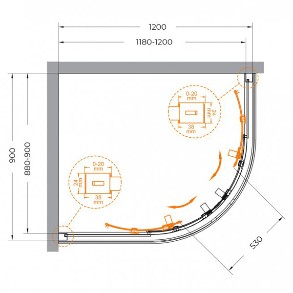 Душевой уголок Cezares Relax-304-RH-2-120/90-C-GM