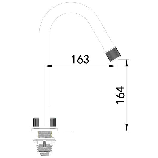Настройка напора воды выведена на излив в виде кольца с насечками в зоне аэратора. Настройка температуры воды осуществляется с помощью цилиндрической ручки, в которой размещён керамический картридж. Ручка управления устанавливается сбоку от излива. Смеситель изготовлен из сантехнической латуни марки HPB59-1 - безопасного для здоровья и не подверженного коррозии сплава из меди и цинка с минимальным содержанием свинца.