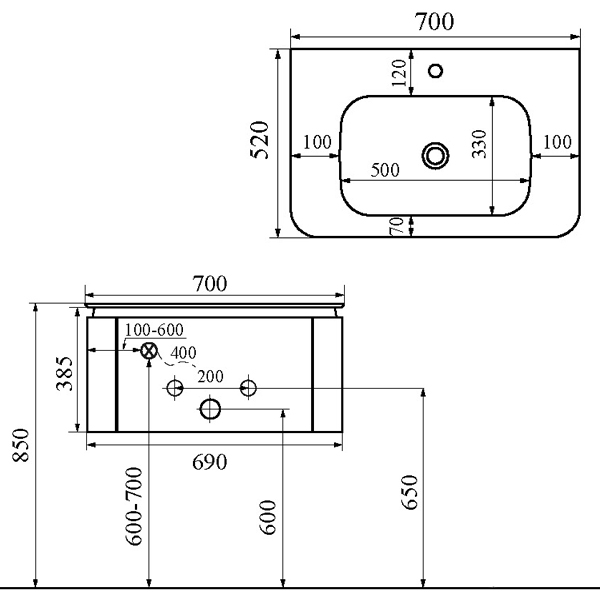 Тумба с раковиной Black&White U925 700
