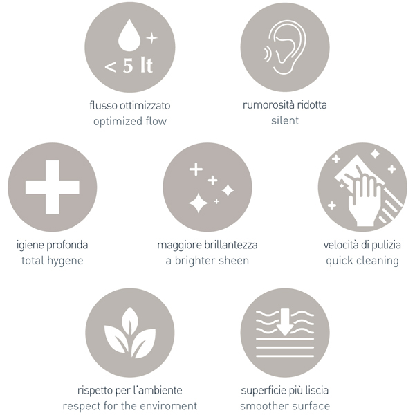 Инновационная система смыва, тщательно омывает внутреннюю поверхность чаши унитаза, задрудняет отложение известняка и предотвращает накопление бактерий на поверхности.
