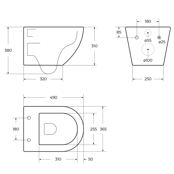 конструкция чаши и направление потока смыва полностью исключают выплескивание воды.
