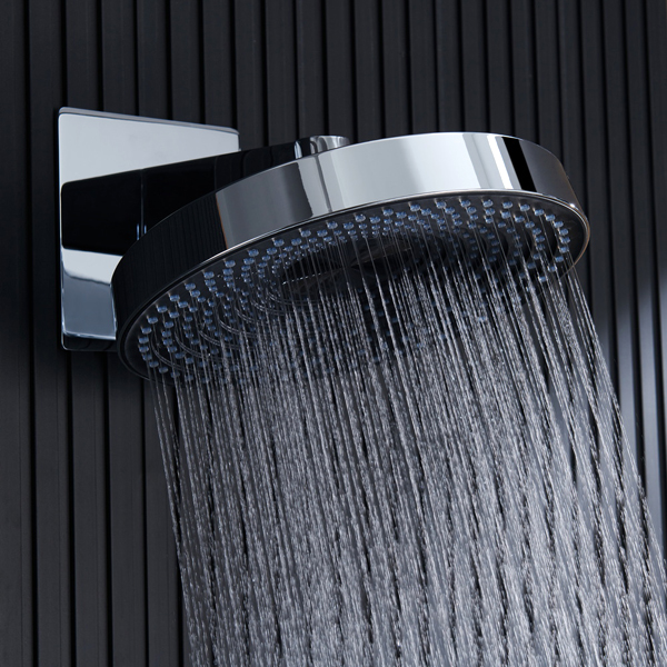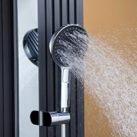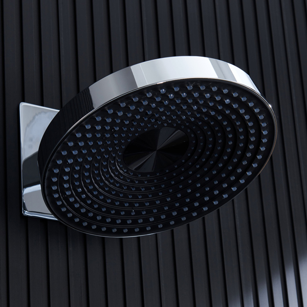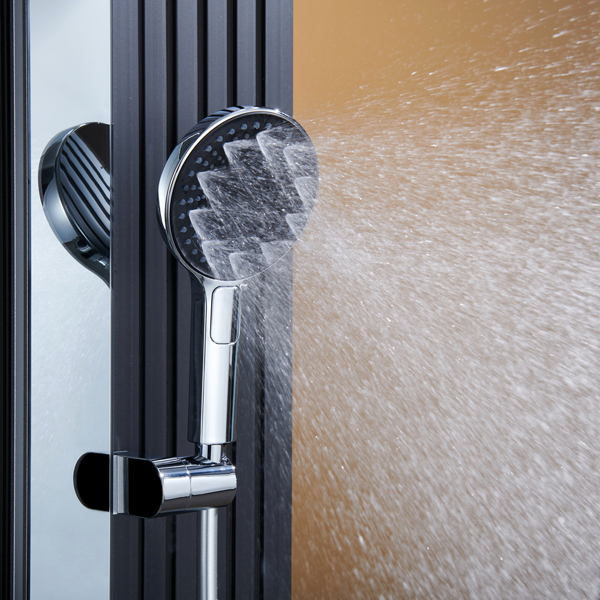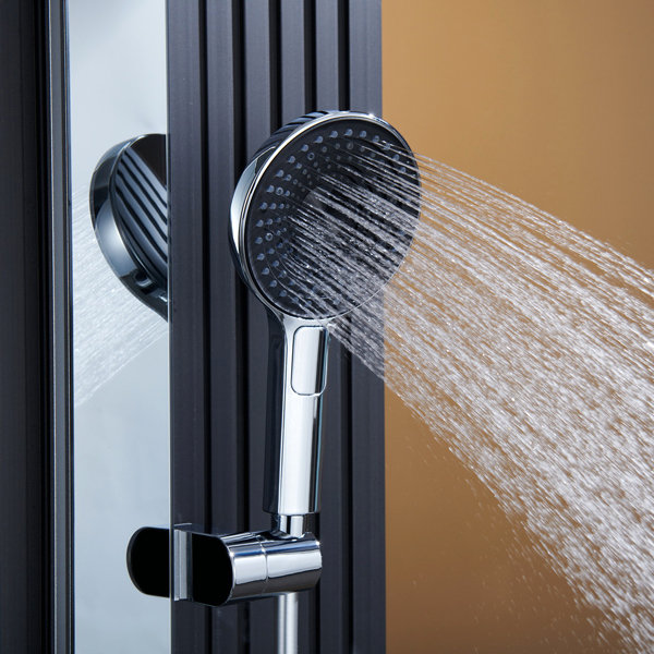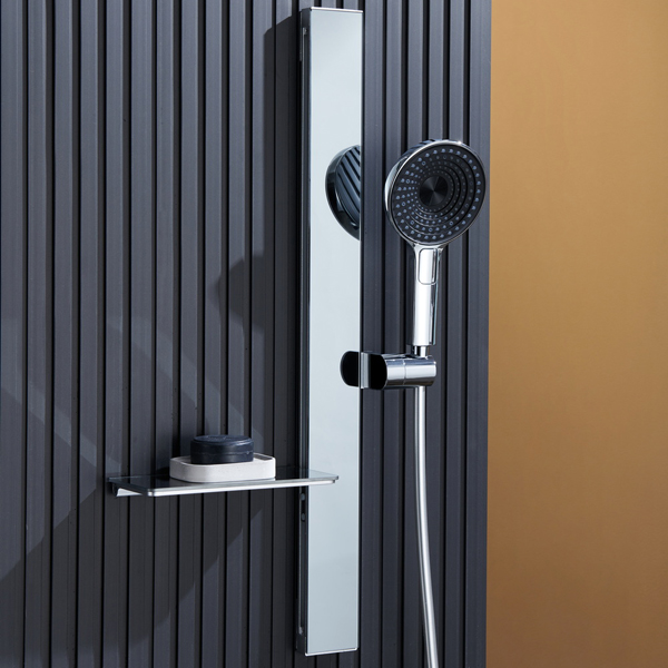 Душевая система GH-9025NC изготовлена из латуни, оксидированного алюминия, нержавеющей стали и закаленного стекла.